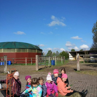 Die bunte Truppe der pferdebegeisterten Kindern bestand aus 8 Mädchen. Unsere Lehrgangskinder lernten eine Menge über und von unseren Tieren. Natürlich gab es auch für jedes Kind Reituntericht. Am Ende haben alle die Prüfung bestanden und eine super Woche gehabt.